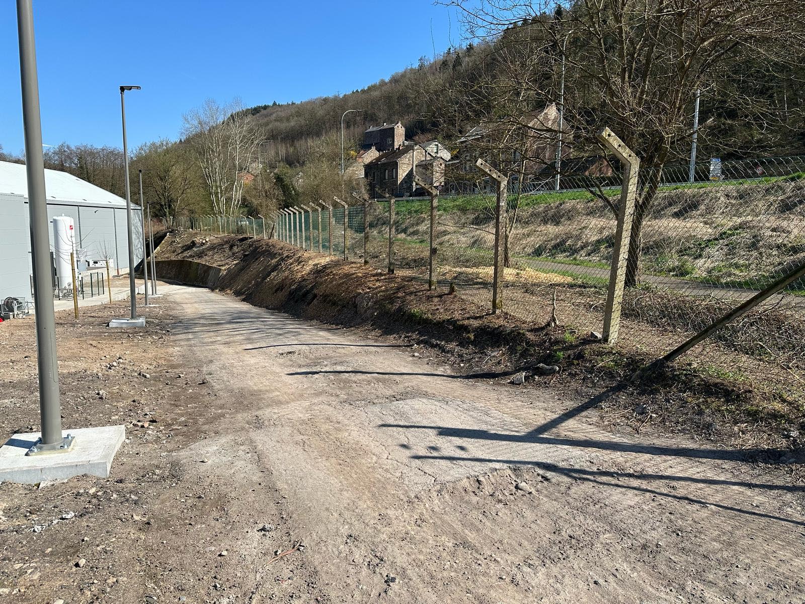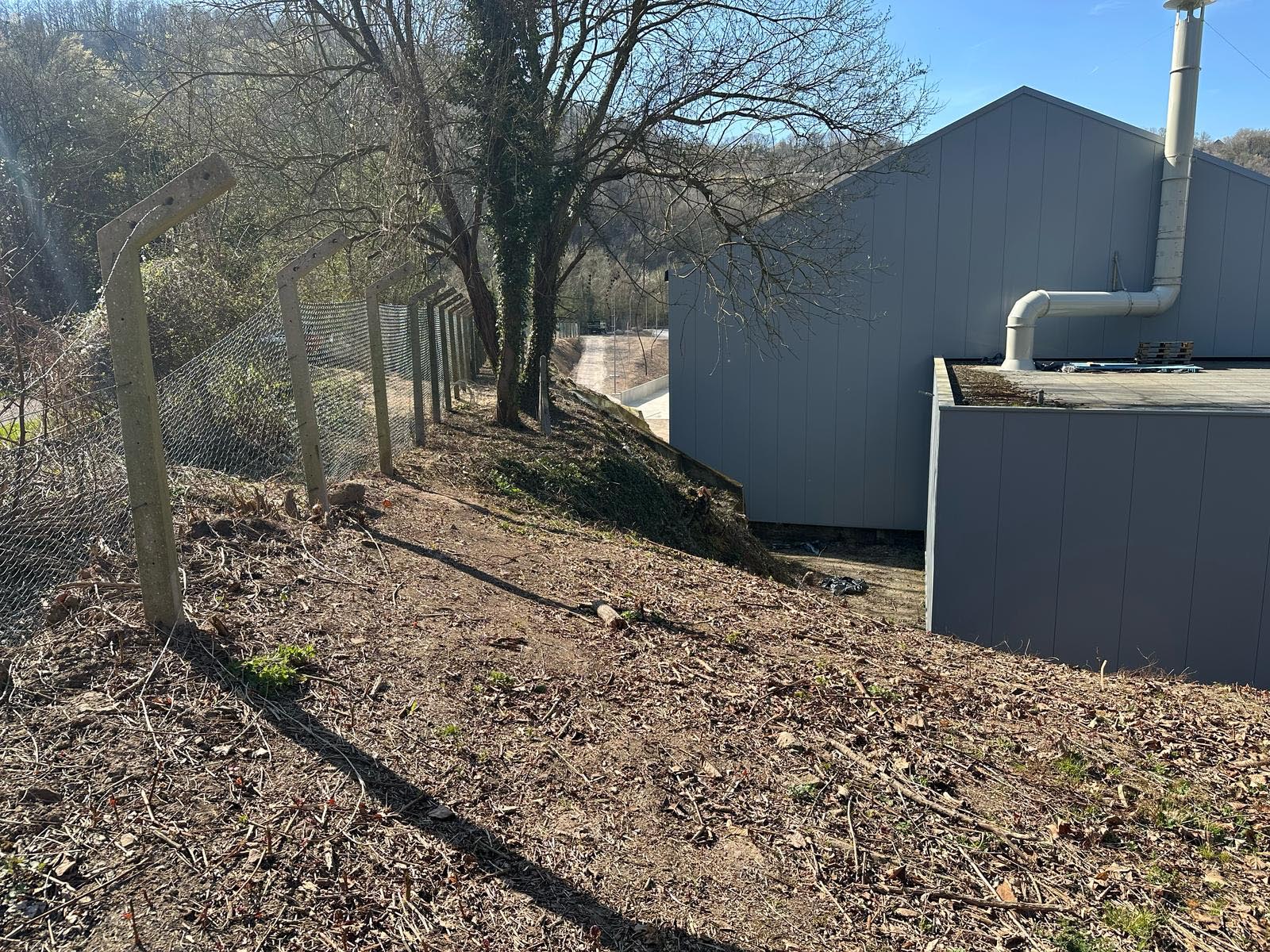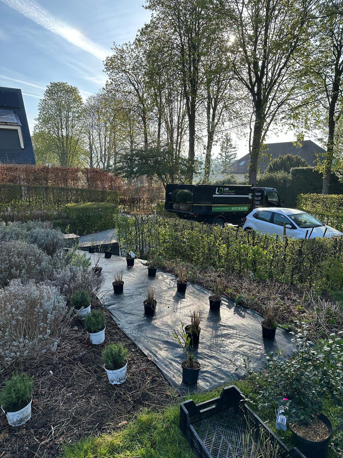 Préparation du sol et pose de clôtures esthétiques.